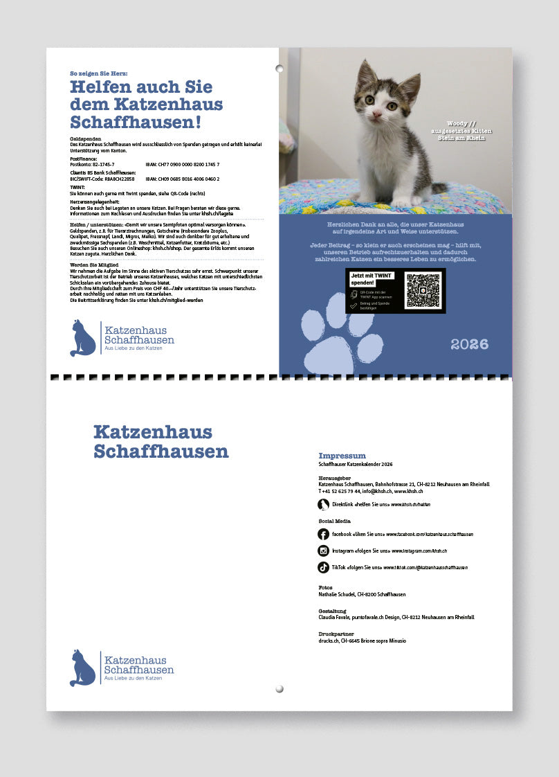 Mit dem Kalender verschenkt ihr nicht nur Freude für ein ganzes Jahr, sondern unterstützt gleichzeitig einen guten Zweck: Der gesamte Reinerlös fliesst direkt in die Versorgung unserer heimatlosen Katzen.